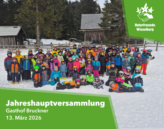 Wir laden alle Naturfreunde-Mitglieder und Interessierte zur Jahreshautpversammlung der Naturfreunde Wieselburg am 13. März um 19:00 Uhr in den Gasthof Bruckner ein.
